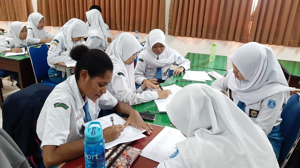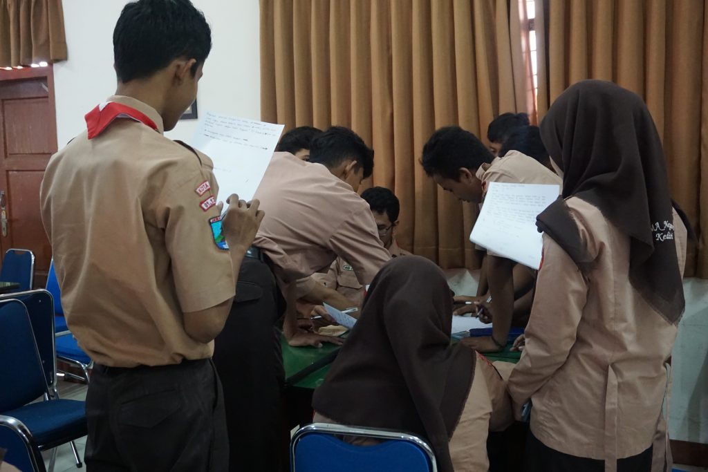 Hari pertama diawali dengan kelas IPS yang menjadi pesertanya, kemudian di hari kedua barulah kelas IPA juga memperoleh pelatihan yang sama. Selama proses pelatihan, fasilitator tetap melakukan pengamatan untuk melihat keterlibatan siswa dalam belajar. Beberapa anak memang mengalami kesulitan untuk menyerap materi yang diberikan. Namun dengan sistem mentoring kelompok dan bimbingan langsung dari fasilitator, siswa yang mengalami kesulitan dapat memperoleh pemahaman yang sama. Selebihnya, siswa-siswa jalur zonasi punya potensi yang tidak kalah bagusnya dengan anak-anak yang lain.